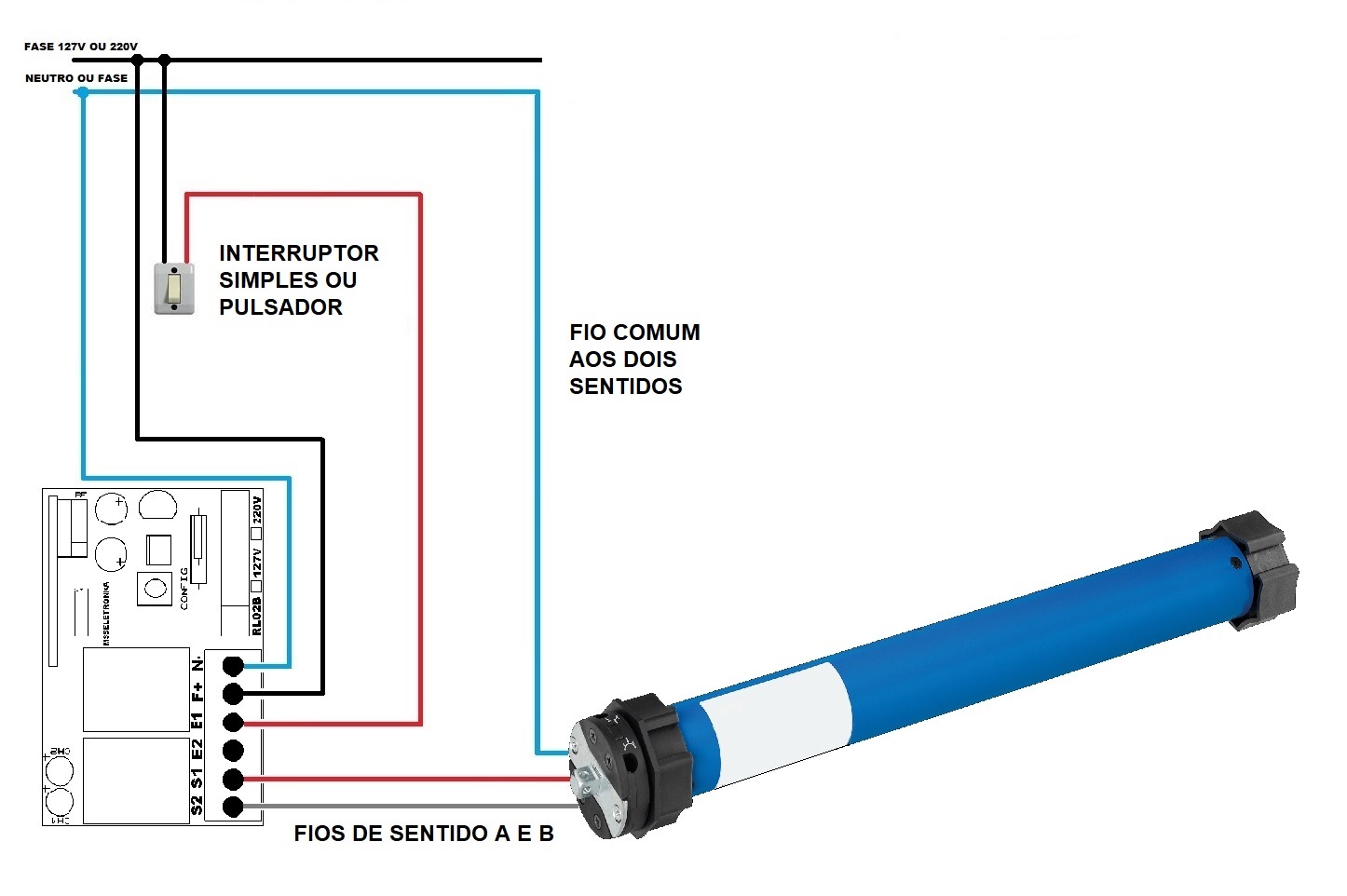 - Meios de controle: Via entrada para interruptor e via controle remoto RF 433Mhz;