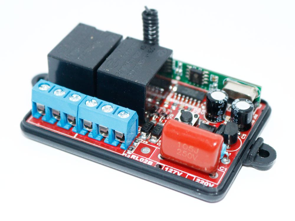 Permite o controle via controles remotos com frequência de 433.92Mhz com protocolo learning code que utilizem chips: eV1527, PT2264, PT2262 e HT6P20B.