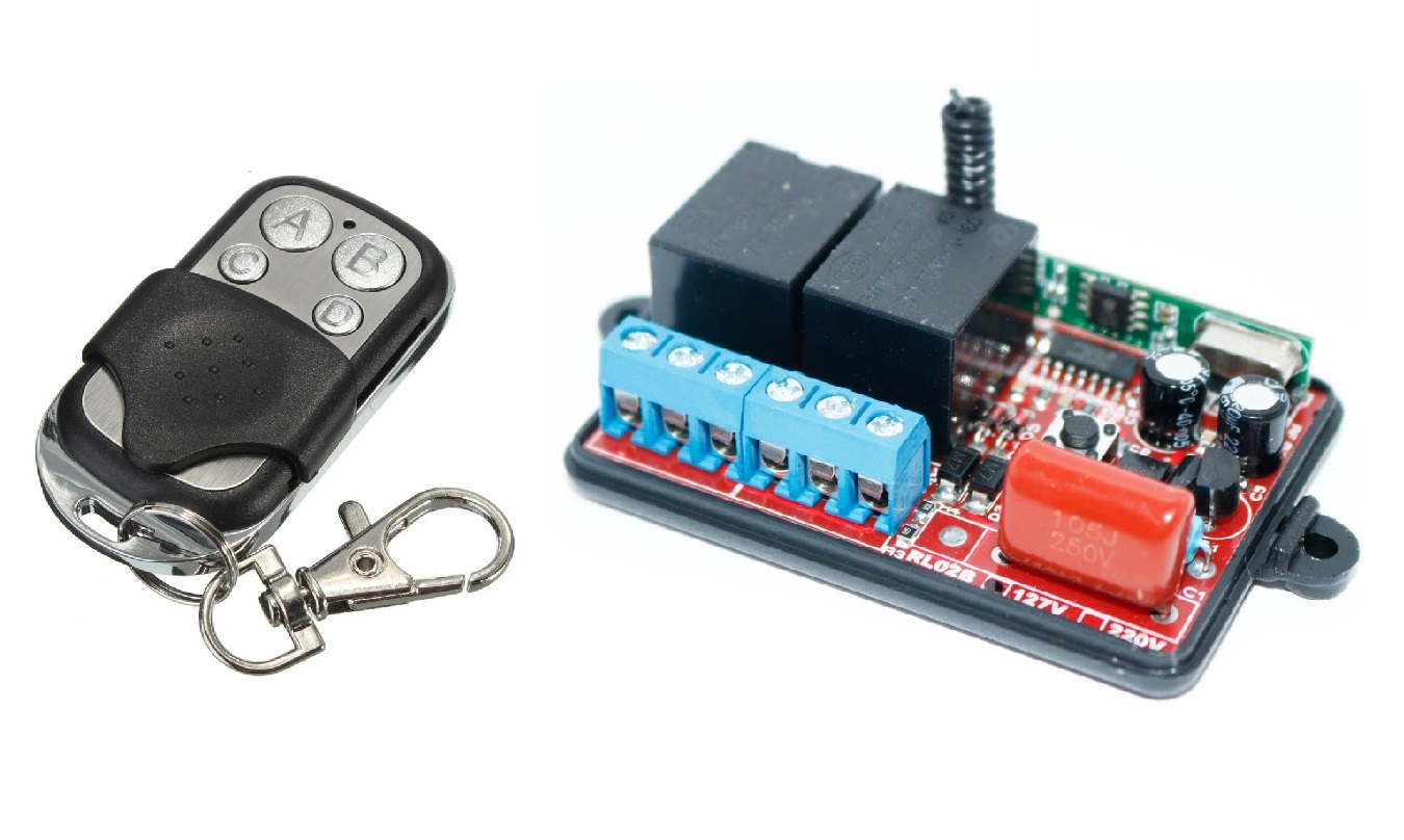Controle remoto 4 botões + Módulo relê para automação residencial RF 433Mhz 127V 2 canais com entrada para interruptor - RL02B-127 - Para automação residencial com Broadlink, touchlight, GeekLink