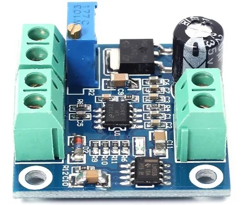 O Conversor de frequência para tensão 0-1Khz para 0-10V converte pulso de frequência (de 0 a 1Khz) para sinal de tensão (de 0 a 10V). A relação frequência x tensão pode ser ajustada pelo trimpot de ajuste (potenciômetro).
