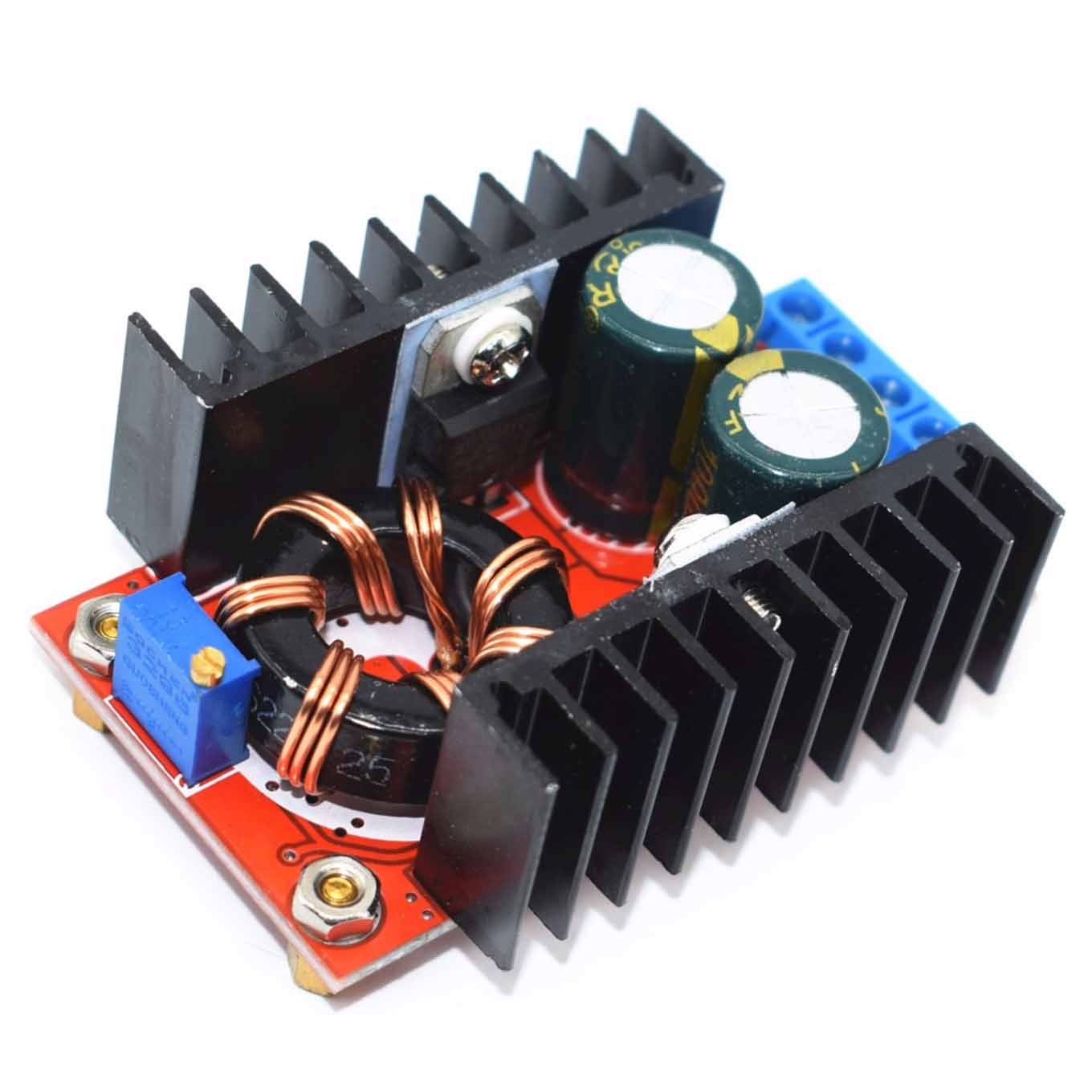 O Módulo conversor DC-DC Step-up 150W ajustável 6A - 10-32V para 12-35V elevar tensões de 10V a 32V para uma tensão de saída de 12V a 35V (sempre maior do que a tensão de entrada).