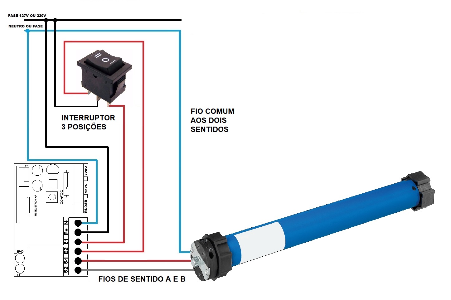 - Controle de motor tubular de 3 fios (+ terra);