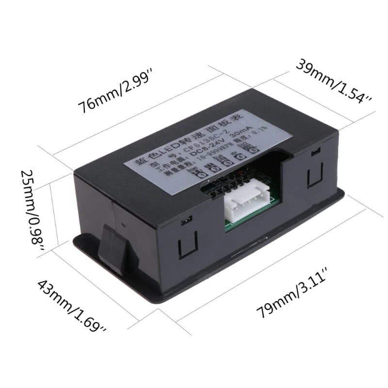 - 1 x Tacômetro digital medidor RPM para painel 10-9999RPM AZUL + sensor Hall;